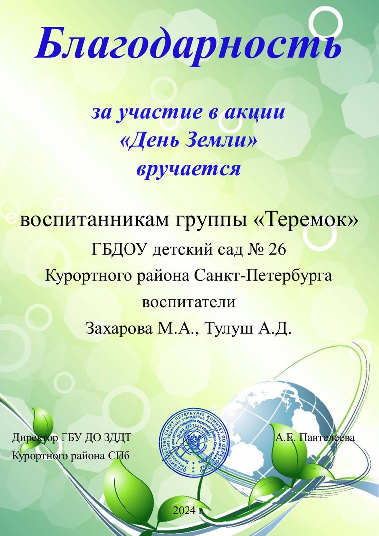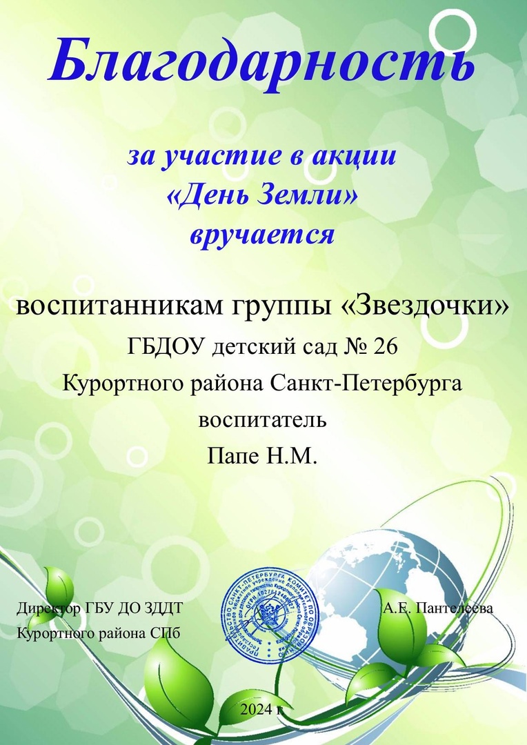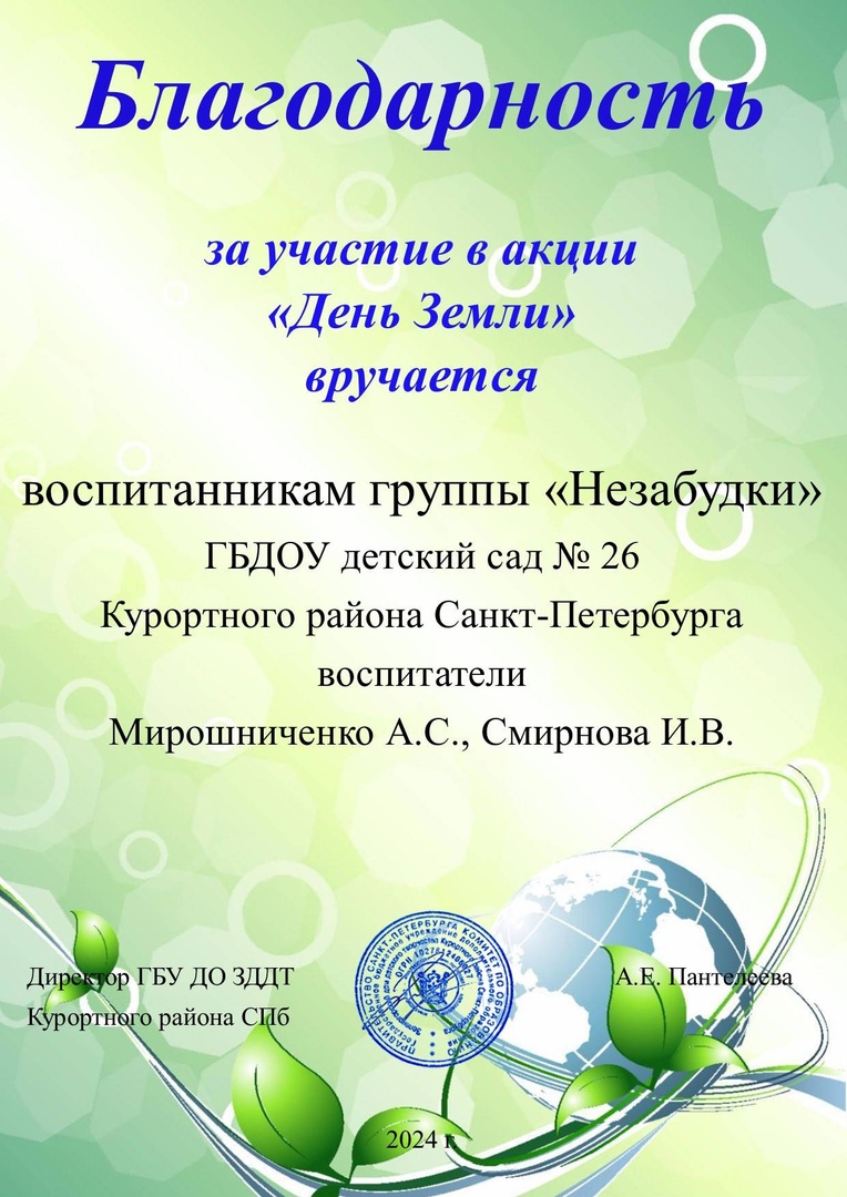 Акция призвана воспитывать в детях бережное отношение к Земле и ответственность за её благополучие и экологическое состояние.